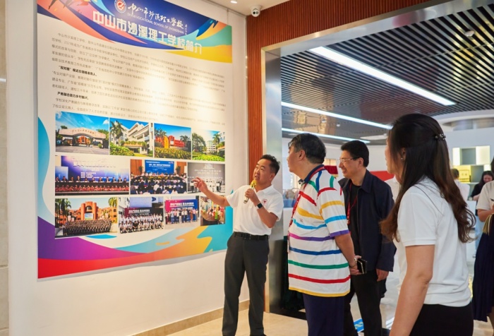 19日,大會在中山職業技術學院科創樓開設特色展區,共有500余人分四批前往參觀。中山市沙溪理工學校攜智芯、幗樣范、女神戰袍、買它電商等4家企業現場展示校企工作室的教學成果。學校黨委書記馮子川,黨委副書記、校長盧永輝,黨委委員、副校長郭冬冬,副校長彭云鵬(掛職)陪同參觀,企業負責人胡頌軍、許剛、文燕燕等對工作室教學成果進行講解。