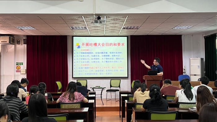 本次“吐槽大會”由吳偉標校長全程策劃和主持組織。活動提前布置了任務,要求各部門各教師盤點梳理個人目前工作生活方面的困難、困擾、困惑和不滿點,整理個人建議或呼吁,坦誠匯報個人工作任務、難點、煩惱點;結合個人、工作、家庭現狀,發泄內心苦惱、困擾;同時提出建議、愿景和希望。