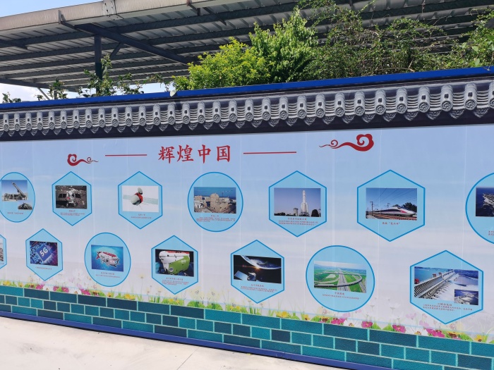 當徐書記等領導來到高年級教學樓旁邊,看到原來破爛的車棚改建成中華上下五千年、中國國粹、中國地標、中國成就、輝煌中國等中華傳統文化墻和休閑長廊時,都給予高度贊揚,再次肯定學校管理方的用心與用情。