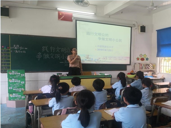 為做好文明城市創(chuàng)建工作,進一步提高師生參與文明城市創(chuàng)建的思想認識和行動自覺,6月28日下午,沙溪鎮(zhèn)康樂小學組織全校開展了“踐行文明公約,爭做文明小公民——創(chuàng)建文明城市,我們在行動”的主題班會活動。