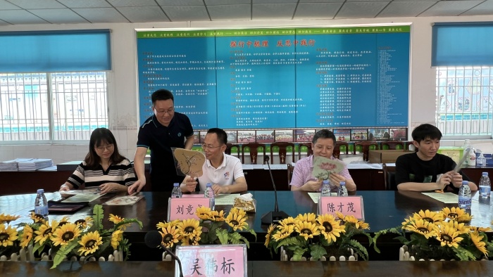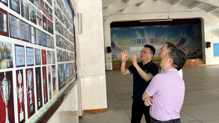 領導嘉賓一到校就馬不停蹄察看走訪校園。在吳偉標校長的帶領下沿著學校中華上下五千年文化長廊、師生書畫作品展、學校管理引領圖片展以及繽紛校園生活圖片展進行了深入的察看,詳細了解了學校在辦學理念、特色課程開展和學校改建前后變化等情況,并仔細詢問了學校在發展和管理過程中遇到的困難和問題。接著,來到學校會議室,與教師代表一起再次聽取吳校長關于學校辦學情況的深入介紹,觀看學校近年來在辦學方面所開展的特色活動視頻,鎮領導對學校所取得的成績和付出的努力給予充分的肯定和贊許,指出學校的辦學理念“體驗是最好的成長”符合小學生成長規律,學校用心、用情辦學值得總結推廣。同時提出沙溪目前的經濟在疫情大背景下的確比較艱難、壓力大,但沙溪黨委、政府想方設法辦好教育,引入社會力量支助教育。最后提出:老師們默默耕耘、無私奉獻,為沙溪教育事業作出了巨大貢獻,希望老師們繼續守住初心、牢記使命、敬業樂業,積極踐行先進教學理念,立足本位,融入更多社會責任,不斷提高教育教學水平,為沙溪乃至國家培養更多優秀人才。希望學校加強黨建引領,做好防疫工作,喜迎二十大。