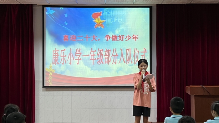 喜迎二十大,爭做好少年。在袁老師的帶領宣誓下,“時刻準備著”的呼號響徹會場,伴隨著莊重的退旗曲,隆重而神圣的入隊儀式圓滿結束。整個入隊儀式規范而且隆重,激發了沙溪鎮康樂小學全體少先隊員的自豪感、榮譽感和使命感,他們定將不斷學習黨的光輝歷史、感悟黨的初心使命、傳承黨的紅色基因,爭做新時代好隊員!