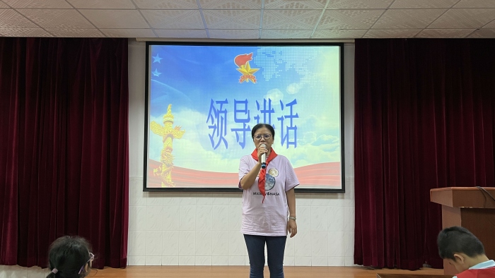 學校副校長少工委副主任阮校長熱情洋溢地致辭,她在講話中給新隊員們提出了殷切希望,號召隊員們以嚴格的標準規范自己行為,努力學習,全面發展,牢記自己的光榮使命,爭做合格的共產主義接班人。