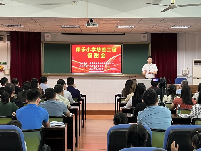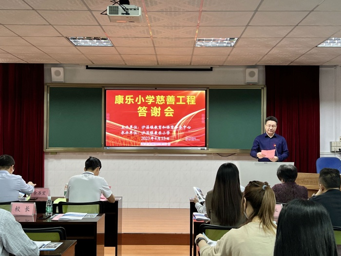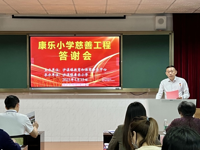 “崇文樂善、厚德進取”是沙溪人精神。2023年,中山市瀘州商會愛心企業家積極為康樂小學翻新校園所有課室和一些場所,優化辦學環境,為教育事業提供了大力支持,給孩子們帶來了更好的學習條件。為了表達對中山市瀘州商會愛心企業家們的感激之情,4月13日上午,康樂小學慈善工程答謝會在學校報告廳隆重舉行。中山市沙溪鎮黨委書記徐成彬、副鎮長余添宏、黨政辦主任貝鵬程、教體中心主任寧云志、中山市瀘州商會會長鄧明超、愛心企業家代表,以及沙溪各學校校長、康樂學校家長、教師、學生代表等近200人出席了本次慈善工程答謝會。