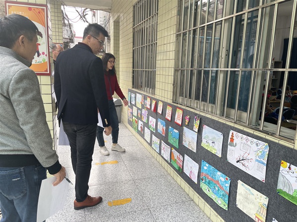 各班級學生在老師的組織和指導下積極行動,以班級走廊外墻為空間,精心設計、布置了主題鮮明、內容豐富的班級外墻文化。作品涵蓋了德、智、體、美等各個方面,有英語思維導圖、有主題小報、有剪窗花作品、有繪畫作品……學生們的作品把各班走廊墻壁打造成集教育性、知識性和藝術性于一體,生動且文化氣息十足的風景線。12月22日下午,大隊部組織評委老師走巡各班外墻,對各班級外墻文化建設進行評比。