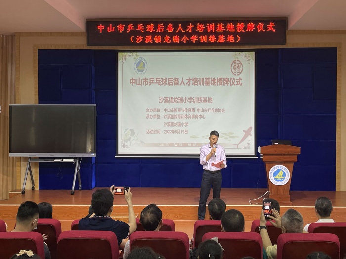 為貫徹落實國家全民健身戰略,推動乒乓球運動發展,進一步推進乒乓球后備人才培養。5月19日下午,中山市乒乓球協會到沙溪鎮龍瑞小學舉行中山市乒乓球后備人才培養基地授牌儀式,將為龍瑞小學乒乓球運動的開展提供有力的支持與指導。