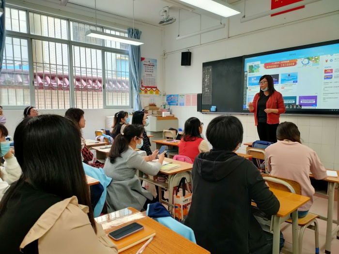 科組長培訓后,組織全體語文科組老師在五(4)班課室利用一體機演示了數字教材3.0在語文學科中的應用,還現場解答了老師的疑問。最后,主管教學的副校長楊飛羽對活動進行了小結,她鼓勵老師要主動學習新的教學工具和教學手段,結合“未來課堂”的理念進行教學設計,提高課堂教學效率,并要求數學、英語、音樂和美術等學科也要開展粵教翔云3.0的校本培訓,落實數字教材的全覆蓋。