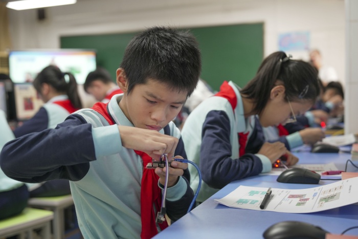 為探索小學創客教育課堂教學模式,提升信息科技教師教學能力,發揮信息科技“四名工作室”人員的輻射引領示范作用,11月9日下午,沙溪鎮“四名工作室”暨創客教育課例展示活動在龍瑞小學電腦室舉行。
