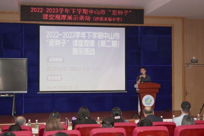 本次觀摩研討活動是線下和線上同時進行,參加本次活動的領導和嘉賓有臺山市教師發展中心及“愛種子”實驗學校教師團隊60多人、江門市教育研究院院長何晉中,中山市教研室教研員、愛種子項目總監辛鍵,沙溪鎮教體中心副主任楊海榮、教研專干劉傳明、科研專干張乖祥以及廣東能龍教育副總裁董那其雅。參加線上觀摩的有中山市愛種子實驗學校的學科老師、市愛種子領教員,鎮區愛種子項目負責人,潮州市湘橋區來宜小學的教師。參加線下活動的有來自石岐區、大涌鎮、板芙鎮和沙溪鎮愛種子實驗學校的教師代表。