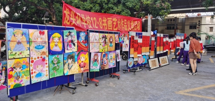 11月30日下午四點(diǎn),龍頭環(huán)學(xué)校書畫社團(tuán)到校門外開展“12.8書畫藝術(shù)作品義賣活動(dòng)”,路過(guò)的學(xué)生、家長(zhǎng)和民眾慷慨解囊,購(gòu)買愛心書畫作品。只見老師和學(xué)生們?cè)诓贾脭偽?,他們忙得不亦?lè)乎,同學(xué)們掛著自己的作品,臉上洋溢著微笑。