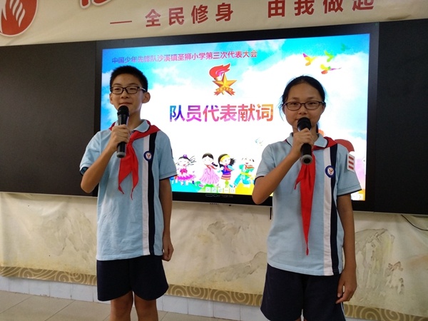 中國少年先鋒隊中山市沙溪鎮圣獅小學第三次代表大會于6月30日下午順利召開。沙溪鎮圣獅小學少工委主任黃慧芳校長、圣獅小學少工委副主任李春蘭主任、圣獅小學少工委副主任李毅主任、全體中隊輔導員及少先隊員代表等參加了會議。