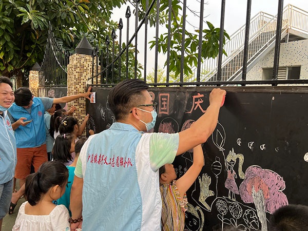 為使學生了解新中國建立的艱辛歷程和祖國建設取得的偉大成就,理解中國共產黨領導中國人民走社會主義道路是歷史的必然選擇,增強對偉大祖國、黨和人民的熱愛,進一步把愛國情感化為具體行動,立志為實現中華民族偉大復興作出貢獻,在祖國母親生日到來之際,濠涌小學的黨員教師帶領家長義工和學生一起布置起班級的涂鴉墻。小小巧手贊祖國,大大畫筆繪山河,涂鴉墻在大家的共同努力下充滿了節日喜慶的色彩,為獻禮祖國涂上了濃墨重彩的一筆。