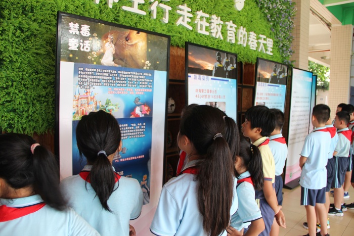 此次展出的圖片內容主要包括禁毒史、毒品知識、毒品對個人和家庭的危害、禁毒法律法規、吸毒個案等幾方面。活動中,同學們認真觀看每一張圖片,詳細了解毒品的危害,熱烈的討論如何分辨常見毒品,如何預防毒品的侵害等。大家紛紛表示,要爭當 “禁毒小小宣傳員”向親朋好友介紹毒品的危害,告訴大家毒品是萬惡之源,要遠離毒品,珍愛生命。學校還將以此為契機,利用國旗下講話、觀看影片、紅領巾小廣播、板報、主題班會等形式積極開展禁毒宣傳教育活動,進一步提高學生自覺抵制毒品侵襲的能力。
