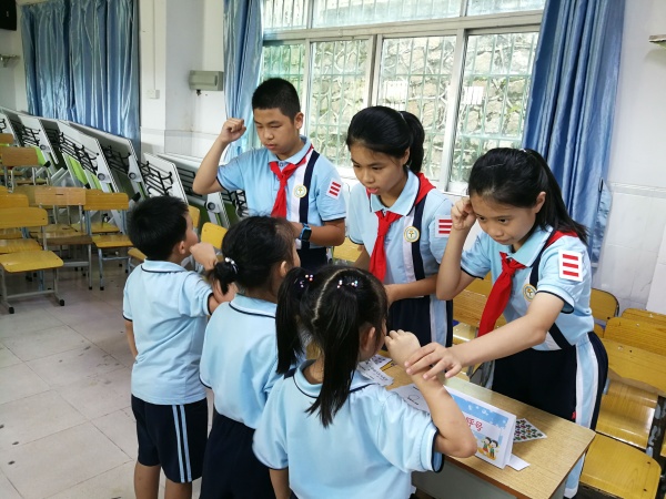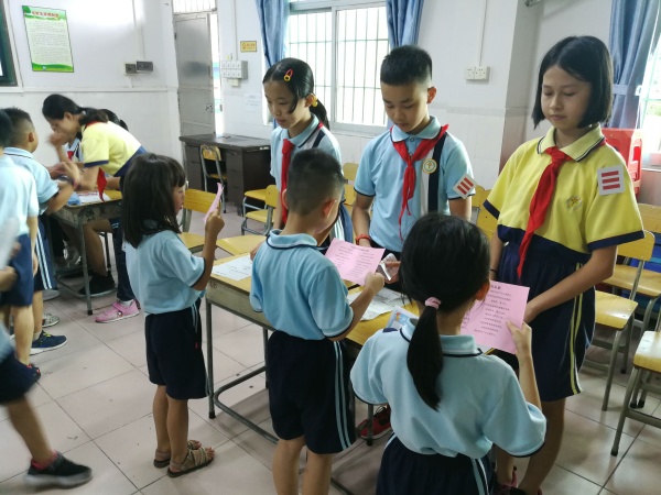 在班主任的帶領(lǐng)下,預(yù)備隊(duì)員們手持“入隊(duì)闖關(guān)卡”,井然有序、興致盎然地進(jìn)行闖關(guān)活動(dòng)。“佩戴紅領(lǐng)巾”“敬隊(duì)禮”“唱隊(duì)歌”“呼號(hào)”等基本常識(shí),預(yù)備隊(duì)員們對(duì)答如流,個(gè)個(gè)激情滿懷,隊(duì)禮標(biāo)準(zhǔn),隊(duì)歌嘹亮。每過一關(guān),就能獲得一枚小貼紙,連闖6關(guān),即為通關(guān)成功!經(jīng)過“過五關(guān)斬六將”,預(yù)備隊(duì)員們?nèi)客P(guān)。手捧通關(guān)成功的闖關(guān)卡,預(yù)備隊(duì)員們臉上露出自豪而又幸福的微笑。