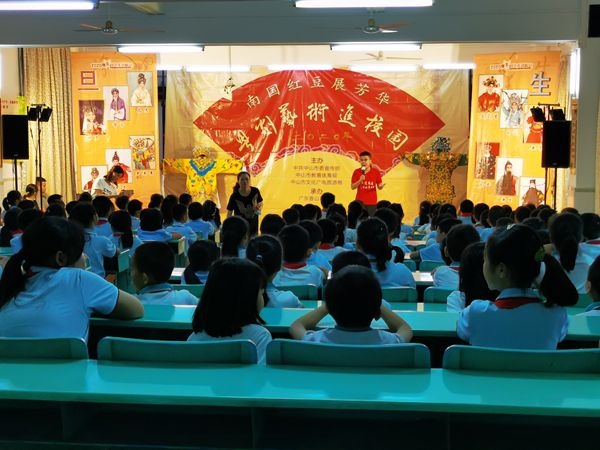 為貫徹落實黨的十九大精神,大力弘揚傳統戲曲文化,進一步加強傳統戲曲藝術的傳承普及,9月15日下午,在沙溪鎮中心小學電教室舉行了“南國紅豆展芳華”粵劇藝術進校園活動。該活動由中共中山市委宣傳部、中山市教育體育局、中山市文化廣電旅游局主辦,由廣東香山粵劇團承辦演出,沙溪鎮中心小學四年級全體師生參加了該活動。