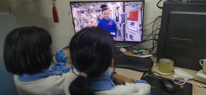 2022年3月23日15時40分,神舟十三號“天空課堂”第二課開講啦!這次授課繼續采取天地協同的互動方式,由神舟十三號的航天員王亞平擔任主授課教師,葉光富和翟志剛擔任助手,為大家進行直播授課。中央廣播電視總臺面向全球進行了現場直播,神灣神舟學校全校2700余名師生有幸參與觀看了本次活動,共同聆聽這堂“公開課”!本次太空授課活動共分為實驗演示(太空“冰雪”實驗、液橋演示實驗、水油分離實驗和太空拋物實驗)、空間科學設施介紹與展示和天地互動環節三部分進行。其中最讓人印象深刻的是實驗演示中他們將中國民間傳統而獨特的手工藝——扎染帶上了空間站。首先,王亞平老師展示了太空擰毛巾與地面的明顯差異。在微重力下太空中擰毛巾時,水并沒有流下而是全部附著在手上形成一層水膜像手套一樣。緊接著,王亞平老師在空間站制作了一幅藍白相間的扎染作品花色酷似降落傘太空。