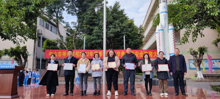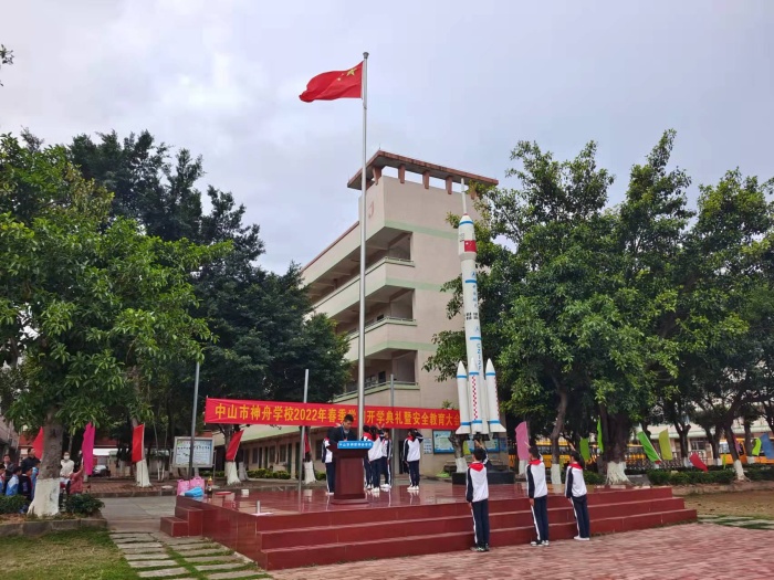 2022年2月14日,中山市神灣神舟學校在校足球場上舉行了“神舟學校2022年春季學期開學典禮暨安全教育活動”。神舟學校黨支部書記熊江華校長,常務奚水清校長到場參加。