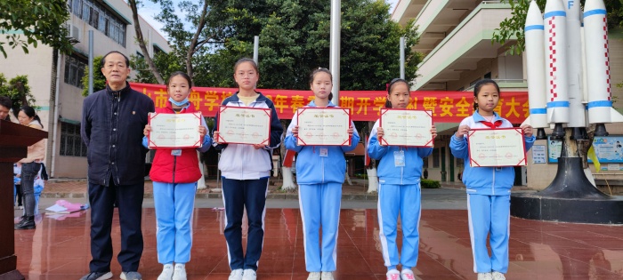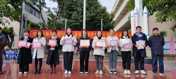接著開學典禮進行到第三項,由神舟學校教務處、德育處、辦公室對上學期表現突出,期末成績優秀、市鎮比賽獲獎的師生進行了總結表彰,表彰中特別突出的是“神舟學校少先隊”榮獲了“神灣鎮先進學校”,并授予了匾額。神舟學校熊江華、奚水清校長為獲獎同學頒發證書和獎品,激勵同學們勤奮博學、進取爭先。