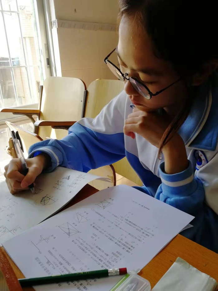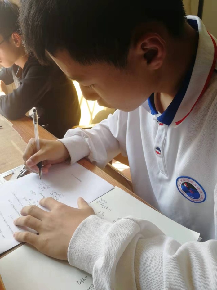 參加數學競賽的同學們,個個全神貫注,積極思考,思維的火花在他們腦海中跳躍,形成一股股智慧的清泉涌向筆尖,將答案刻印在試卷上——定格完美,不負青青。