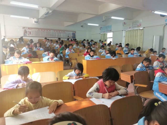 瞧,孩子們認真答卷的樣子,多專心啊!仿佛在說:我們可是卯足了勁要拿第一呢!老師說過,細心才是最好的朋友,一定要睜大眼睛仔細看,做到“眼到,心到,手到”。“我要抓緊時間,我要把字寫得端端正正,我要認真思考,只有這樣才能百戰百勝,取得好成績!”這樣的畫面構成了賽場上一道靚麗的風景線。