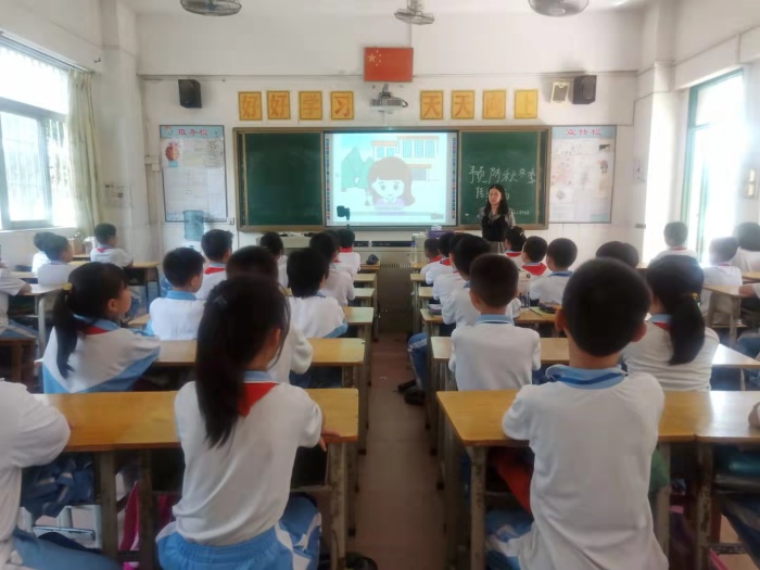 各班也積極開展了“預防秋、冬季傳染病”主題教育班會,班主任向學生介紹了有關秋冬季傳染病的知識,著重講了流行性感冒、流行性腮腺炎、肺結核、水痘等傳染病的特征、傳播途徑和防治辦法,并從不同角度講到呼吸道感染的預防措施,提醒學生每天開窗通風,搞好環境衛生,保持室內空氣新鮮。