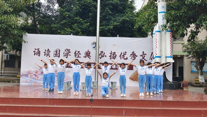2023年5月9日下午,中山市神灣神舟學校組織一至四年級在學校室外運動場舉行了以“誦讀中華經典 弘揚優秀文化”為主題的“中華優秀傳統文化經典誦讀比賽”。學校黨支部書記熊江華,常務校長奚水清出席了本次活動。
