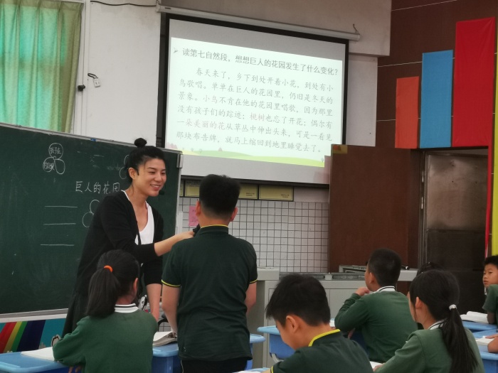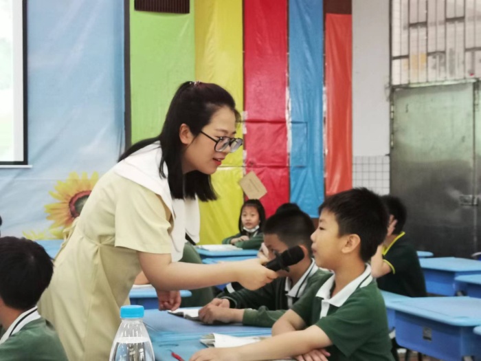 5月18日,潘倩男老師展示了二年級課例《青蛙賣泥塘》,黃舒婷老師帶來四年級課例《巨人的花園》。匯報課上,她們都充分發揮自己的優勢和工作以來的所學所得:潘倩男老師進行創造性教學,課堂上充分發揮學生的主體性,學生們積極思考,踴躍發言回答問題,共同營造了輕松愉悅、富有啟發性的課堂氛圍;黃舒婷老師讓學生對文本有整體的感知和理解,各環節層層遞進,過渡銜接自然流暢。她們精美的課件、巧妙的板書設計、精煉的教學語言深深地吸引了學生。
