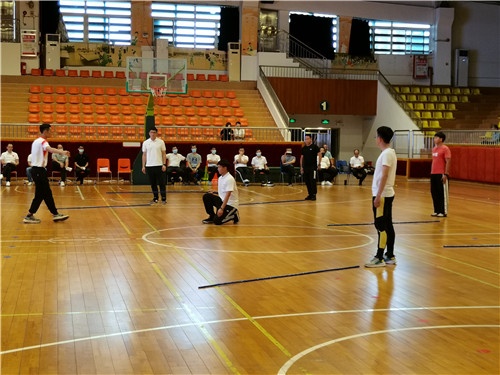 然后,由中山市代表隊(duì)全體隊(duì)員進(jìn)行廣東省中小學(xué)體育教師技能大賽各項(xiàng)目展示(內(nèi)容:隊(duì)列隊(duì)形、廣播操、特長(zhǎng)、微縮課堂展示)。中山代表隊(duì)的展示起到了一個(gè)很好的榜樣與標(biāo)桿作用,讓在座的體育教師直觀的感受到了中山市最高水平的體育教師基本功展示。臺(tái)上十分鐘,臺(tái)下十年功,扎實(shí)技能展示背后是日復(fù)一日、年復(fù)一年的枯燥練習(xí),同時(shí)也是體育教師對(duì)體育教育事業(yè)熱愛、敬業(yè)、執(zhí)著追求的體現(xiàn)。