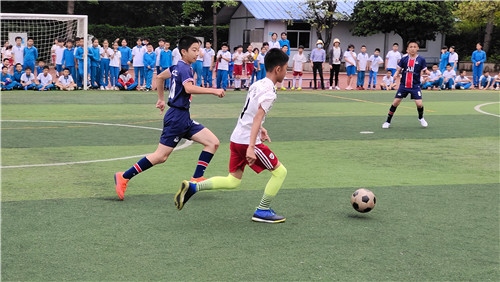 綠茵場(chǎng)上,比賽雙方戰(zhàn)況激烈、一時(shí)竟難分高下,運(yùn)動(dòng)健兒們帶球突破、搶斷、防守、傳球、射門(mén)、撲救等無(wú)不扣人心弦,激烈的場(chǎng)面也吸引了眾多師生前來(lái)觀看。賽場(chǎng)上的運(yùn)動(dòng)健兒在揮灑汗水,場(chǎng)邊的觀眾、啦啦隊(duì)們也在激情的搖旗吶喊,氛圍濃烈、班級(jí)團(tuán)隊(duì)合作精神得到了極大的升華!