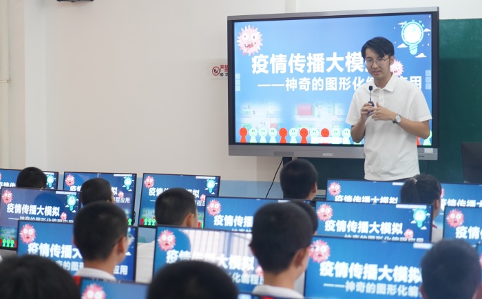 9月22日下午,中山市石岐中心小學教育集團翠亨小學呂梓健老師執教可視化編程課例《疫情傳播大模擬——神奇的圖形化編程》,呂老師以“模擬疫情傳播”為主線,以任務驅動的形式層層遞進,讓學生設計“健康小伙”與“攜帶者”的感染傳播變化過程,引導學生主動學習、自主完成任務。從貼近生活實際的疫情傳播模擬中,學生進一步了解了科學防疫的重要性,更深刻地體會到了疫情期間國家的偉大。