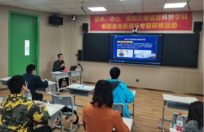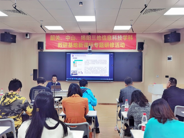 11月21日下午,廣東省信息技術(shù)教研基地(中山-揭陽-韶關(guān))新課標(biāo)研修暨送教活動在揭陽市榕城區(qū)開幕。揭陽市教育局教研室教研員、廣東省初中信息技術(shù)(揭陽)教研基地負(fù)責(zé)人、正高級教師方少芹老師作開班致辭,方老師對來到揭陽進(jìn)行聯(lián)合教研的老師們表示熱烈歡迎,并希望通過三地的聯(lián)合教研,彼此能產(chǎn)生思維碰撞,牽手同行,聯(lián)合共享,互助共贏。中山市教育教學(xué)研究室信息技術(shù)教研員、廣東省小學(xué)信息技術(shù)(中山)教研基地負(fù)責(zé)人、特級教師陳明宏老師作研修說明,本次研修能夠順利開展實(shí)屬不易,得益于三地教研基地負(fù)責(zé)人的密切溝通和協(xié)同,大家能夠相聚一起、共同研修是一種緣分,也是信息科技新課標(biāo)共研的盛會,更是信息科技教師專業(yè)發(fā)展的機(jī)遇和挑戰(zhàn),希望大家好好珍惜本次三地聯(lián)合研修,遵守當(dāng)?shù)氐囊咔榉揽匾螅瑢W(xué)有所成,學(xué)有所獲,學(xué)后有行。