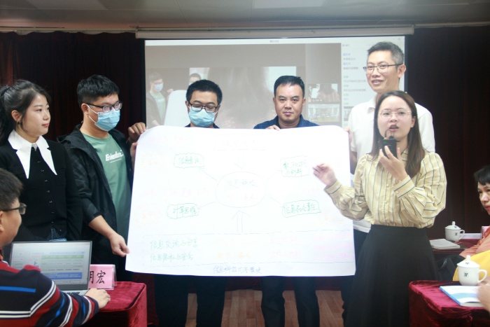 本次聯(lián)合研修的第一議程是主題沙龍活動,中山-揭陽-韶關(guān)三地成員圍繞信息科技新課標(biāo)存在的疑惑開展了別具一格的沙龍研討活動,成員們圍繞著信息科技核心素養(yǎng)的內(nèi)涵、信息科技課程知識體系、算法與編程的內(nèi)在聯(lián)系、從信息技術(shù)到信息科技的內(nèi)在邏輯變化、人工智能如何進(jìn)入中小學(xué)課程等六個(gè)主題進(jìn)行小組研討、展示和匯報(bào)。各小組激烈討論,精心繪制思維導(dǎo)圖,自信大方上臺講解,沙龍掀起一陣陣“頭腦風(fēng)暴”,凝結(jié)集體智慧,不斷拓寬思路,也帶來更多的思索,直接將研修活動的氛圍推向高潮。三位基地負(fù)責(zé)老師對活動進(jìn)行總結(jié),基地負(fù)責(zé)人一致認(rèn)為這次的沙龍研討很有價(jià)值,不僅拉近三地老師們的距離,而且沙龍研修讓大家對新課標(biāo)的內(nèi)容有更深刻的認(rèn)識和理解,整個(gè)研討過程有思考、有記錄、有疑惑、有收獲,充分體現(xiàn)了新課標(biāo)的學(xué)思先行,研悟?yàn)楸荆`行為芯的學(xué)習(xí)態(tài)度。