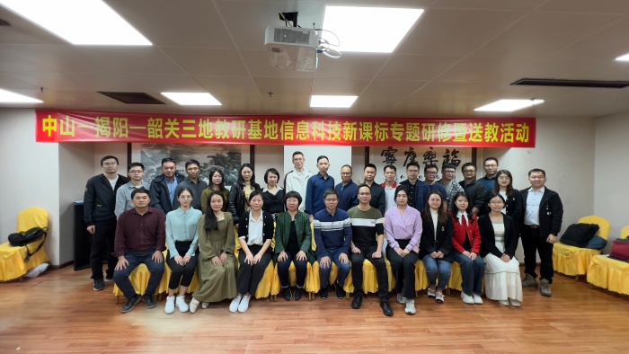 初冬暖意融,教研意正濃。為發(fā)揮廣東省基礎(chǔ)教育教研基地的輻射作用,探討小初信息科技課程銜接教學(xué),11月21日至25日,廣東省小學(xué)信息技術(shù)(中山)教研基地一行24人赴揭陽市榕城區(qū)開展中山-揭陽-韶關(guān)三地聯(lián)合研修暨送教交流活動。本次活動以“線上+線下”混合研修的方式,中山-揭陽-韶關(guān)三地教師聚焦新課標(biāo)、落實(shí)新課念、賦能新課堂、探索新方向,參與觀摩交流人數(shù)達(dá)兩千八百多人次,有效探索省教研基地建設(shè)新模式。