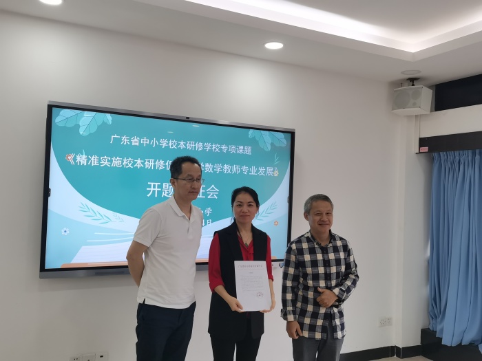 為精準把握課題研究方向和實施辦法,切實提高課題研究成效,2022年11月24日上午,中山市實驗小學在名師工作室舉行由數學科組長楊英老師主持的廣東省中小學校本研修學校專項課題《精準實施校本研修促進小學數學教師專業發展》的開題論證會。中山市教育教學研究室科研部馮繼有部長、小學數學教研員劉燕老師和中山市教師發展中心趙龍山教授、中山市實驗小學徐銘侃校長以及數學科組教師代表出席參加會議,會議由中山市實驗小學教務處肖振漢主任主持。