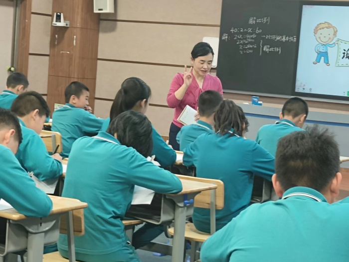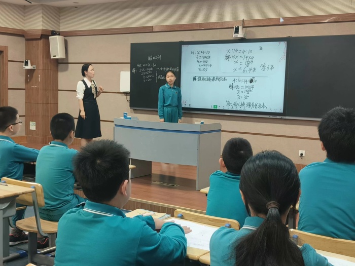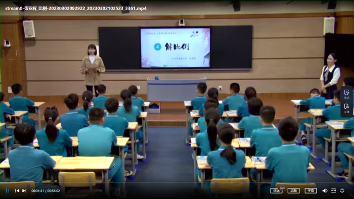 活動分為課例展示、說課、課題研究情況介紹和專家指導四個環節。活動伊始,課題組核心成員張亞輝老師和六4班的學生為大家帶來HPM視角下的《解比例》課例展示。張老師以物物交換為切入點,讓學生體會比例源于生活,也應用于生活,充分體現數學的應用價值。利用九章算術的歷史名題,讓學生對解比例的方法進行古今對比,體會社會在發展,數學也在進步,但解比例運用的數學思想始終沒變。借助泰勒斯測量金字塔的視頻,讓學生感受古人的智慧,最后給學生留下陳子測日的懸念,把學習延伸到課堂之外。