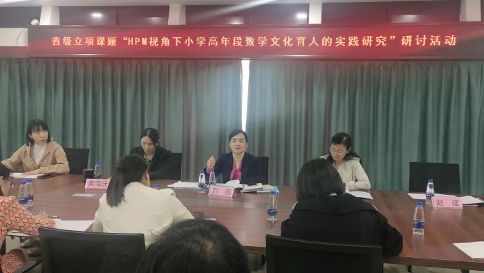 為了提高課題組的科研能力,保證課題研究的順利開展,3月2日中山市實驗小學“HPM視角下小學高年段數學文化育人的實踐研究”課題組開展課題研討活動。參加本次研討活動有中山市教育教學研究室小學數學教研員、廣東省特級教師劉燕、中山市實驗小學何利副校長、黃海慶副主任、趙建副主任、課題組全體成員以及學校數學科組全體教師。