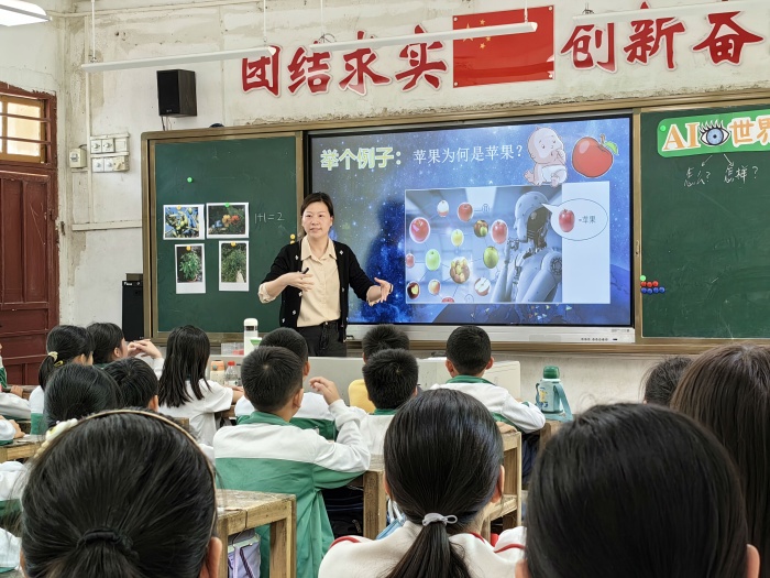 陳宏珊副主任執(zhí)教了信息科技課《AI看世界》,陳老師從認(rèn)識(shí)身邊常見(jiàn)的植物引入,以“機(jī)器認(rèn)識(shí)蘋(píng)果”為例,帶領(lǐng)學(xué)生了解AI識(shí)圖的過(guò)程,并運(yùn)用“形色”“騰訊AI開(kāi)放平臺(tái)”等工具,通過(guò)猜想—觀察記錄—小組實(shí)驗(yàn)—驗(yàn)證結(jié)果的教學(xué)模式,讓學(xué)生愉悅地體驗(yàn)“AI看世界”的方式,培養(yǎng)學(xué)生信息素養(yǎng)及思維能力。課堂上,孩子們認(rèn)真聽(tīng)課、思考、互動(dòng)、實(shí)踐,從孩子好奇的眼神看出對(duì)知識(shí)的渴望,從孩子專(zhuān)注的神情看出體驗(yàn)的愉悅。科技的魅力無(wú)限,在孩子心里埋下熱愛(ài)的種子。