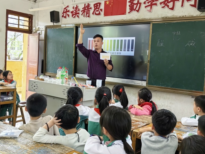 姜克旺老師給三年級(jí)的學(xué)生帶來(lái)了一節(jié)別開(kāi)生面的科學(xué)課《酸堿的秘密》,他帶領(lǐng)孩子們?cè)诟鞣N實(shí)驗(yàn)和實(shí)際操作中一步步走向科學(xué)的真相,學(xué)生利用檢測(cè)試紙去探究生活中白醋,洗衣粉等物質(zhì)的酸堿性。學(xué)生又用氣球收集到酸堿反應(yīng)生成的氣體。學(xué)生沉浸在一個(gè)個(gè)神奇有趣的科學(xué)實(shí)驗(yàn)中,科學(xué)的種子在心田萌發(fā)。課間,姜老師又在操場(chǎng)帶領(lǐng)全校學(xué)生發(fā)射了水火箭,氣動(dòng)火箭,空氣炮等,學(xué)生在一陣陣尖叫聲中感受到了科學(xué)的神奇。