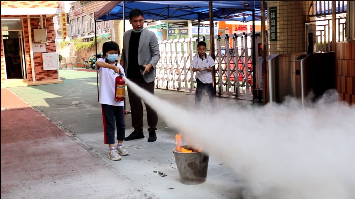 隨后,該校分管安全的譚文輝主任針對消防安全方面對學生進行了深入教育,強調了消防要點和消防自救的有關知識。陳文卿副校長給全體師生詳細講解了滅火器的使用方法,并現場進行了演示,同時邀請了部分學生上臺體驗使用滅火器滅火的過程。