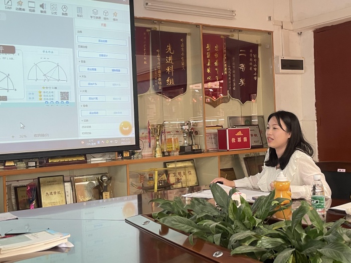 接著是“愛種子”教研中心莫潔瀅老師以黎老師和林老師的教學設計為切入點,介紹了自主學習課與互動探究課這兩種課型的教學任務、教學側重點及每個學習任務的維度與時間安排等,再從大單元教學理念下如何培養學生的數學核心素養進行細致的論述,使老師們既學習到了“愛種子”平臺資源的使用方法,又從理論上理解“愛種子”“三環四得”教學模式的設計理念,做到實踐與理論相結合。