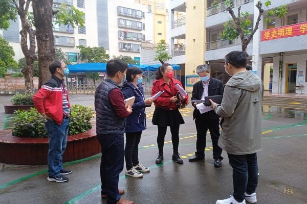 3月24日下午,石岐西廠小學迎來中山市教師發展中心劉歡桐副主任帶領的中山市教育和體育局防疫督導組及石岐街道教育和體育事務中心衛生專干劉俊杰一行。