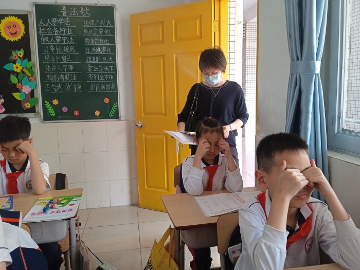 緊接著,督學鄭結(jié)霞校長查看了該校的校園環(huán)境。看到學校校園干凈整潔;各班教室桌面、地面、墻面整潔,文化布置有特色、有主題,她贊賞有加。同時,她還檢查了學校課程的落實情況,與學生們親切交談,詢問了學生的作業(yè)量情況和睡眠情況等等。