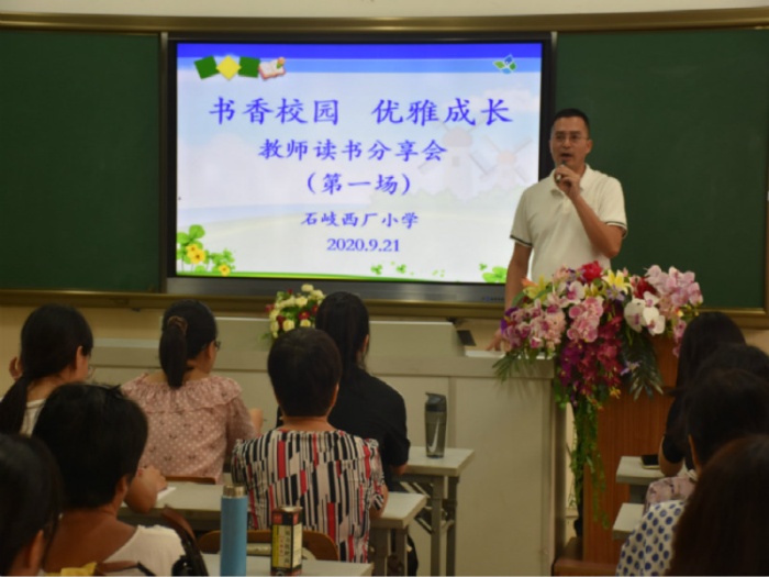 讀書是促進教師成長的重要途徑。石岐西廠小學歷來重視教師隊伍的專業化建設,注重教師的精神成長。為了進一步提升教師的整體素質,打造學習型的教師團隊,增強教師的文化底蘊,石岐西廠小學于9月22日下午在學校電教室舉行了讀書分享會活動。