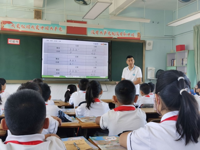 陳建明副校長利用前置探究單進行課前探究,讓孩子提前感知可能性大小的核心知識。整個公開課陳建明副校長用有趣的摸球游戲貫穿全課,引導學生通過猜想、操作、驗證,進而總結規律,讓學生在充滿好奇的游戲中興高采烈地主動思考、探究新知。在課堂實踐環節,陳建明副校長還引導學生聯系實際,發現藏在生活中的可能性大小的現象,并運用于實際,獨立設計抽獎游戲,且介紹設計思路,讓學生在互相評價中,實現思維的碰撞,培養學生的核心素養,真正實現了《新課標》中“培養學生用數學的眼光觀察現實世界;用數學的思維思考現實世界;用數學的語言表達現實世界”的核心目標。陳建明副校長親切、幽默、機智的課堂教學風格,深受學生喜愛,同時得到了中山市教研室小學數學教研員劉燕老師以及聽課老師的高度認可。