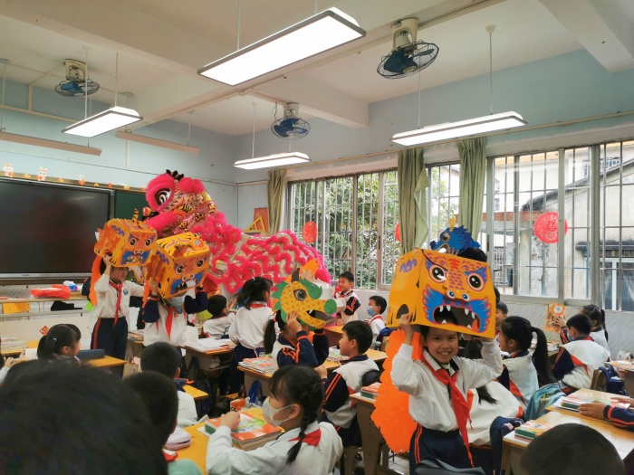 開學典禮上,“醒獅隊”也來向全體師生拜年。典禮結束后,兩只獅子分別到班級為開學采青,這也是該校進行傳統文化教育的一大舉措,在學校常規活動中進行傳統文化的熏陶。