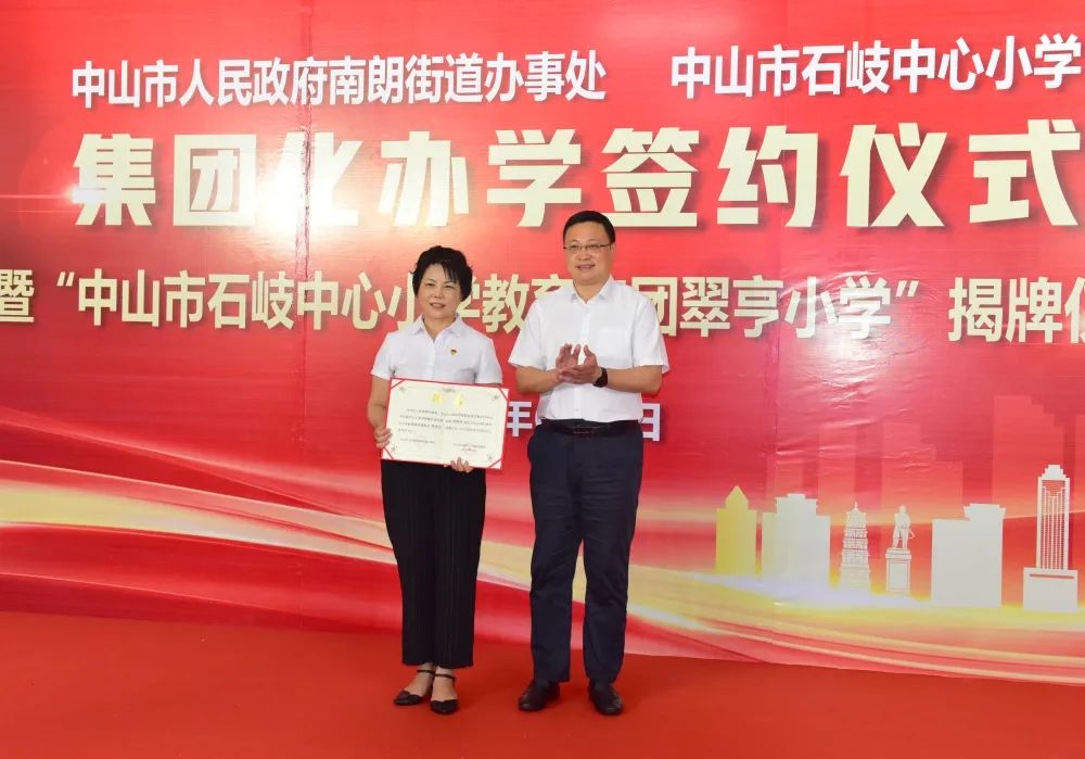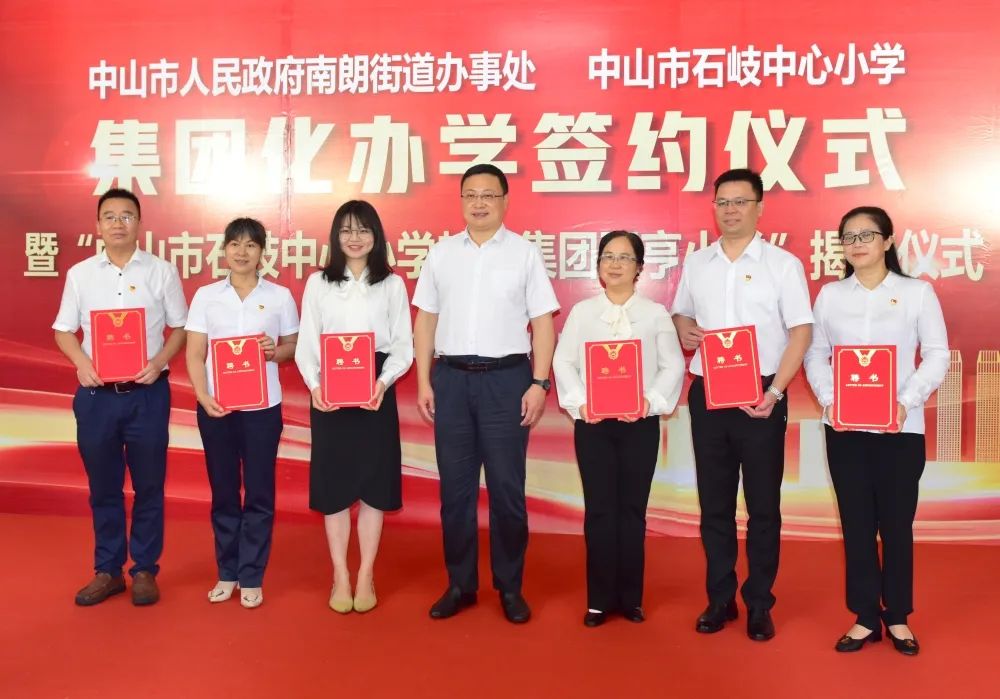 接著,南朗街道黨工委副書記、辦事處主任許行、中山市教體局副局長王志紅為中山市石岐中心小學教育集團理事會、石岐中心小學教育集團翠亨小學班子頒發(fā)聘書。