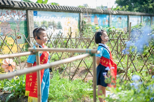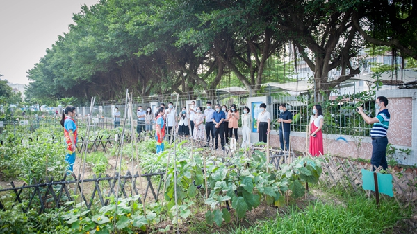 活動伊始,一行人在三鄉鎮載德小學毛義祥校長的帶領下參觀了該校的勞動教育實踐基地。毛校長向大家介紹了勞動教育實踐基地的建設理念、建設過程和建設成果?;氐氖吖?、花卉生機勃勃,長勢喜人,勞動教育成果扎實可見。