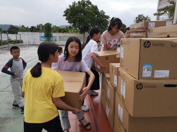 本次支教幫扶,中山市石岐中心小學向龍寮小學捐贈了35臺電腦。經過三天的緊張工作,支教教師完成了兩個辦公室和一個電腦教室的網絡布線、電腦安裝和調試工作,使龍寮小學校園接入信息網絡。