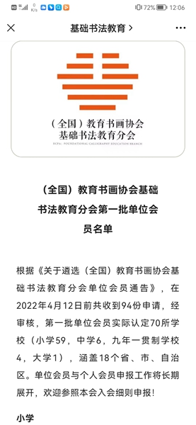 本次獲評(全國)教育書畫協(xié)會基礎(chǔ)書法教育分會首批單位會員,標(biāo)志著學(xué)校書法教學(xué)又上一個新臺階。中山市石岐中心小學(xué)書法科組將以此作為新的起點,不斷前行。