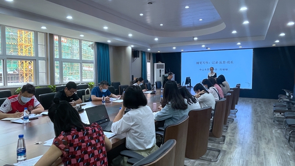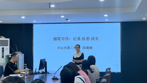 研修活動分為兩個部分。首先陳姍姍老師進行《記錄·反思·成長》為主題的隨筆撰寫專題講座。陳老師以自己隨筆撰寫的經歷深入淺出地講解了隨筆撰寫的方法和技巧。七十多頁的課件,細致入微地講解了隨筆寫作的意義、困惑和成效,讓研修班成員們甚是佩服,同時也激發了大家堅持隨筆寫作的熱情和進行教育研究的熱忱。